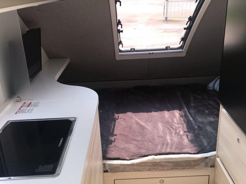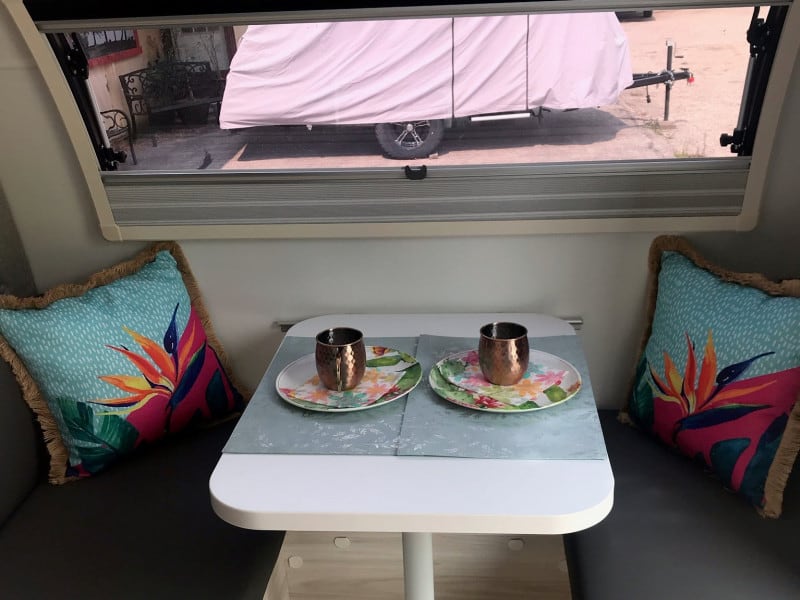 Black Canyon Package: Upgraded off road experience by adding another 310 watts of solar ( so two panels = 620) holding tank heaters, and under glow lights, aggressive off road tires, Boondock package! Front Dinette goes converts to bed as well as full queen size bed at rear of the camper!
